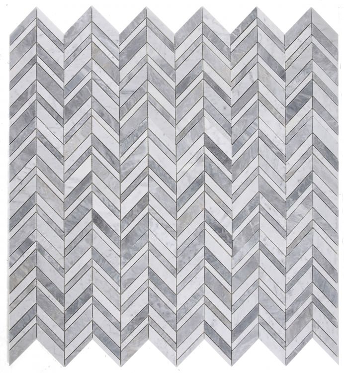 New | Herringbone | Gray & White | Mosaic Sheet Tile | Walls, Interior Floors & Showers